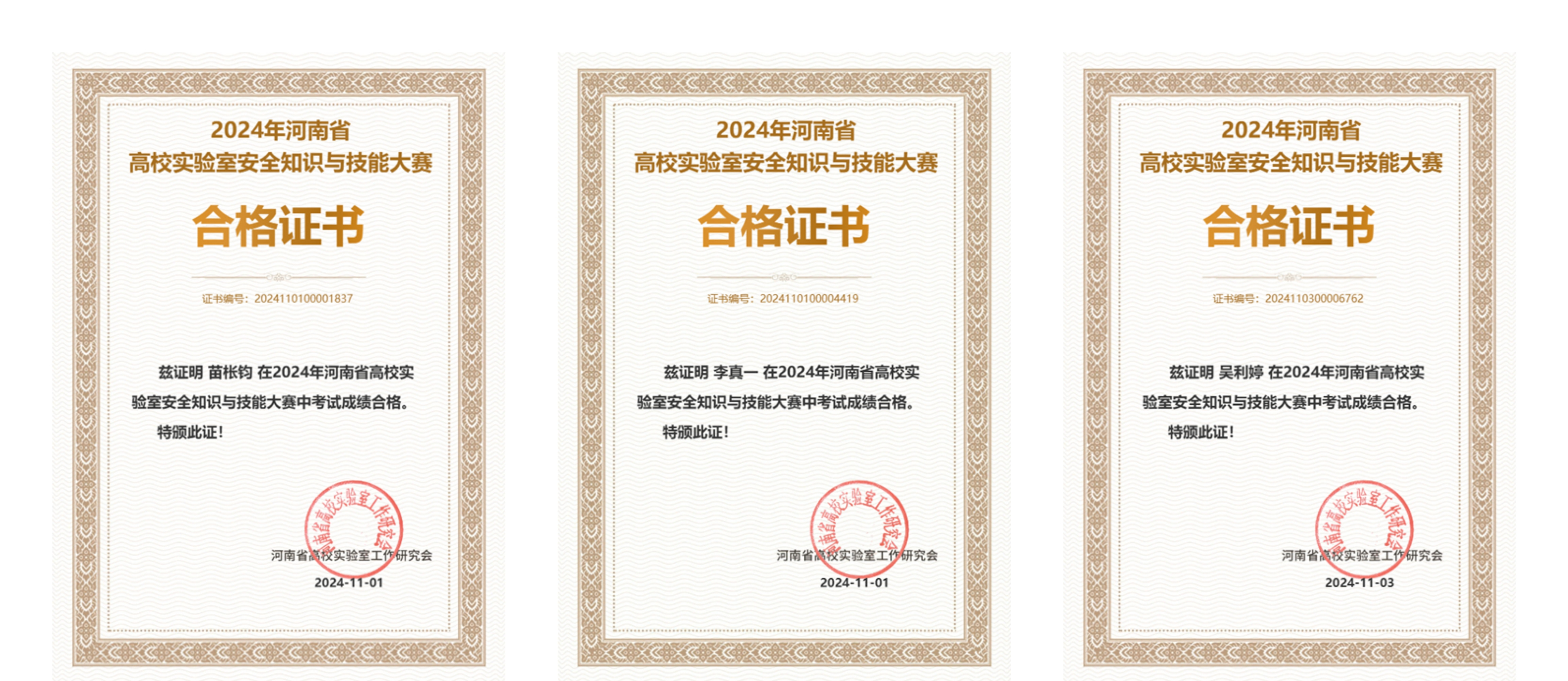 实验室安全与消防安全紧密相连,对于保障校园安全稳定和师生生命安全至关重要。尤其对于研究生而言,绝大多数时间是在实验室中度过的。依据党中央、国务院、教育部关于做好实验室安全工作的相关文件精神,以及河南省教育厅对加强高校实验室安全工作的指示和要求,同时响应河南省高校实验室工作研究会《关于开展“河南省高校第四届实验室安全文化宣传月”活动的通知》,我院积极组织开展实验室安全知识与技能大赛,旨在强化学生实验室安全的底线思维和红线意识,培养学生的实验安全理念与习惯,提升师生实验室安全技能,营造安全的实验环境。同学们认真学习了实验室相关安全知识并在比赛中取得优秀的成绩。