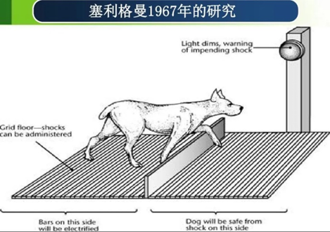 “习得性无助”一词由美国心理学家塞利格曼提出,他在研究动物行为时,设计了一项实验:他把一只狗关在笼子里,每次蜂音器响起的同时给狗施加电击,狗被关在笼子里无法逃避电击,只能被动地忍受痛苦。反复几次后狗已经习惯了在蜂音器响起时接受电击,即使后来蜂音器响起时没有施加电击而且打开笼子,狗也不逃跑并且倒地呻吟和颤抖。狗在后面的实验中没有受到电击并且可以逃离笼子,但由于它之前未能逃跑的经验,逐渐形成了逃跑也无用的认知。