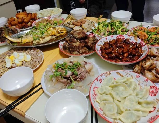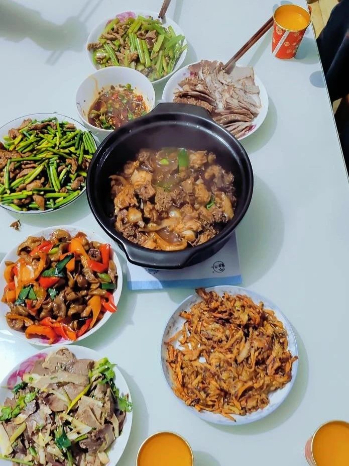 长长的饭桌,长长的幸福!今年的年夜饭是每一个人做一道拿手菜,有三门峡特色的灵宝肉夹馍,糊卜,还有必备的观音堂牛肉。过年的意义是可以让我们从忙碌的生活中相聚在一起,聊过往,聊未来。在我们一起做的年夜饭和欢声笑语中迎接新的一年,开启新的征程。饺子包藏着幸福美满,年夜饭藏着满满的年味儿和温情。每一道菜都是对新一年的期许,愿新的一年,欢愉且胜意,万事皆可期。