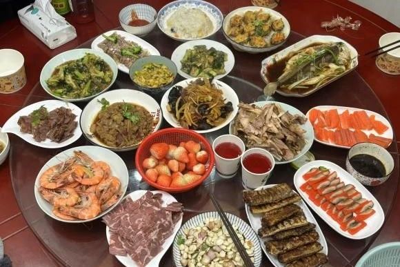 这一桌年夜饭,是家的专属浪漫。鲜嫩的虾与肥美的鱼,是吉祥如意的象征;色彩缤纷的荤素菜肴,是生活的多彩模样。圆润的草莓如颗颗红宝石,甜蜜诱人。一家人围坐,热气腾腾。每一道菜都倾注着对家人的心意,在这温馨时刻,过往的酸甜苦辣都化作此刻的幸福,愿新岁家人相伴,喜乐绵延。
