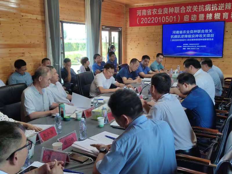 / 2022-077月24日上午,河南省辣椒良种联合攻关项目启动会在惠济区中原种业科技园举行。启动仪式上,李付广院长与攻关项目首席科学家(中国工程院院士、湖南农业大学校长)邹学校、河南省农业农村厅副厅长王俊忠、中原学者河南省农科院园艺所副所长张晓伟、国家蔬菜工程技术中心北京市农业科学院研究员辣椒育种专家耿三省、河南省蔬菜产业技术体系首席科学家(河南农业大学教授)李胜利等业界专家齐聚一堂,围绕辣椒抗病抗逆良种创制、科...