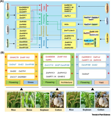 / 2023-05郑州大学农学院李付广研究员团队全面阐述作物早熟育种最新研究进展和制约因素,梳理分析作物在驯化过程中适应栽培地区开花和成熟的作用机制,并提出利用多效性因子实现作物早熟性状与多种优良性状高效聚合的育种策略,对指导作物育种具有重要意义。相关研究成果于2023年5月18日以“Synergistic optimization of crops by combining early maturation with other agronomic traits”为题发表在植物学领域知名期刊《植物科学趋势...