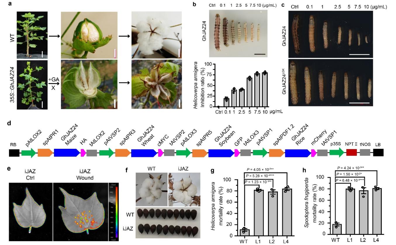 / 2024-044月29日,农学院李付广研究员团队在棉花中发现了具有广谱应用价值的新型高效杀虫蛋白,解析了相关分子机制,对其应用前景进行了展望。相关成果以“iJAZ-based approach to engineer lepidopteran pest resistance in multiple crop species”为题发表于国际知名期刊《Nature Plants》。农学院李付广研究员为论文总通讯作者,河南省特聘教授任茂智教授、上海辰山植物园陈晓亚院士、美国爱荷华州立大学Jonathan F Wende院士为论文...