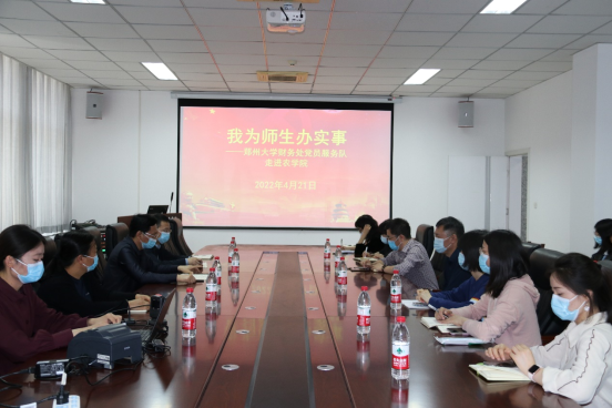 / 2022-044月20日,机关党委书记张承凤、副书记周华、袁丽洁一行来我院交流指导能力作风建设年及机关作风满意度评议工作。党总支书记白付理、副书记李珏、及副院长商海红、焦浈一同参加了座谈会。会议由白付理主持。白付理介绍了农学院一流学科的建设情况,从制度建设、干部队伍建设和能力作风建设三个方面,介绍了农学院高质量党建对促进学院各项事业发展取得的成效。张承凤对农学院党的建设工作给予了肯定,介绍了机关党委的基本情况和...