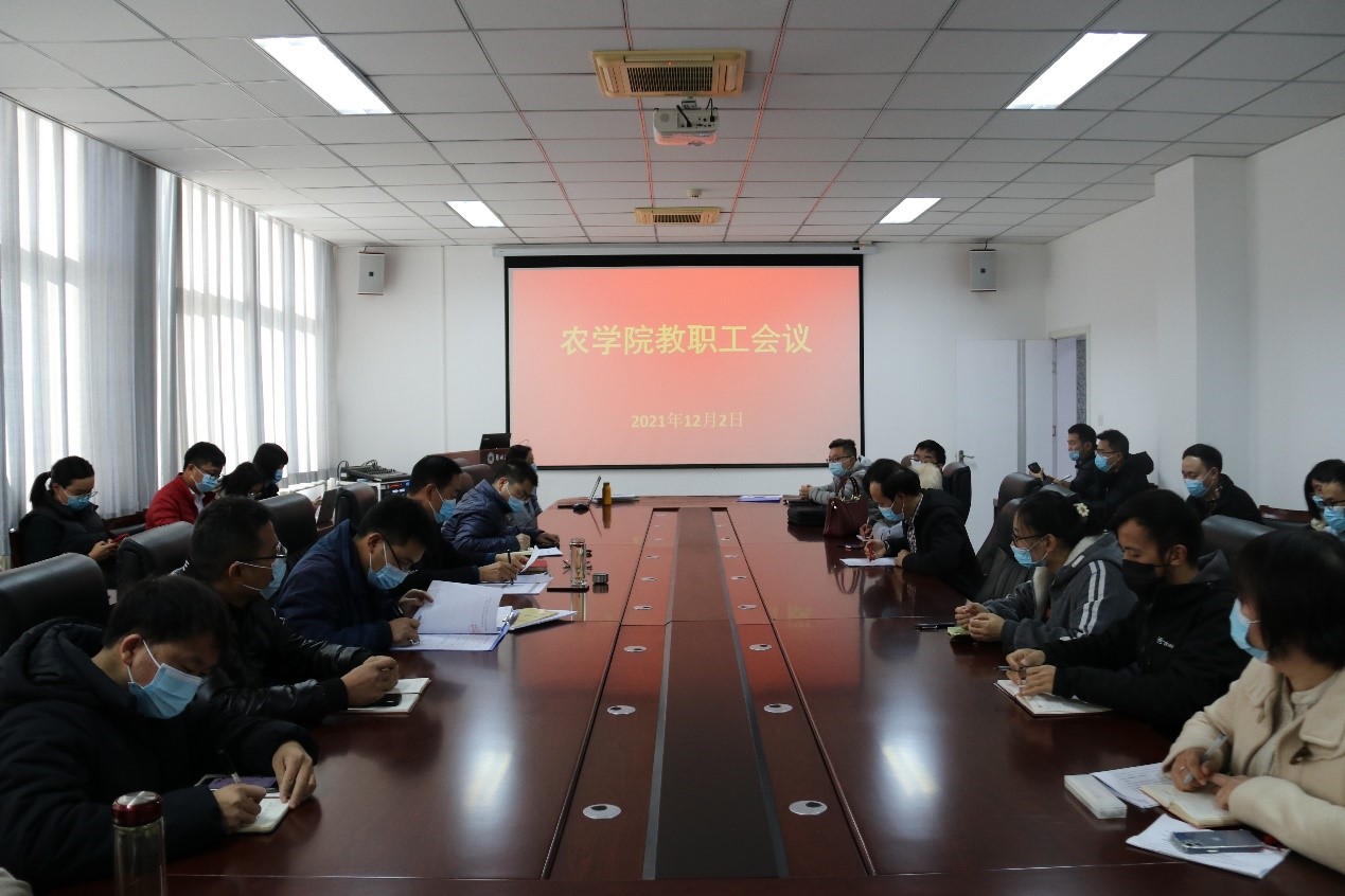 / 2022-032月24日下午,农学院召开2022年春季学期第一次全体教职工大会,分析部署了新学期新形势,提出了新任务新要求。学院党政班子成员和全体教职工参加了会议,会议由院党总支书记白付理主持。会上,白付理传达了学校人才工作专题会议精神,结合学院当前高层次人才工作进展和目标任务,部署安排学院2022年度招贤纳智相关工作,并且有针对性地对高层次人才工作提出了具体要求。随后,白付理传达了2021年基层党组织书记抓党建工作述职评...