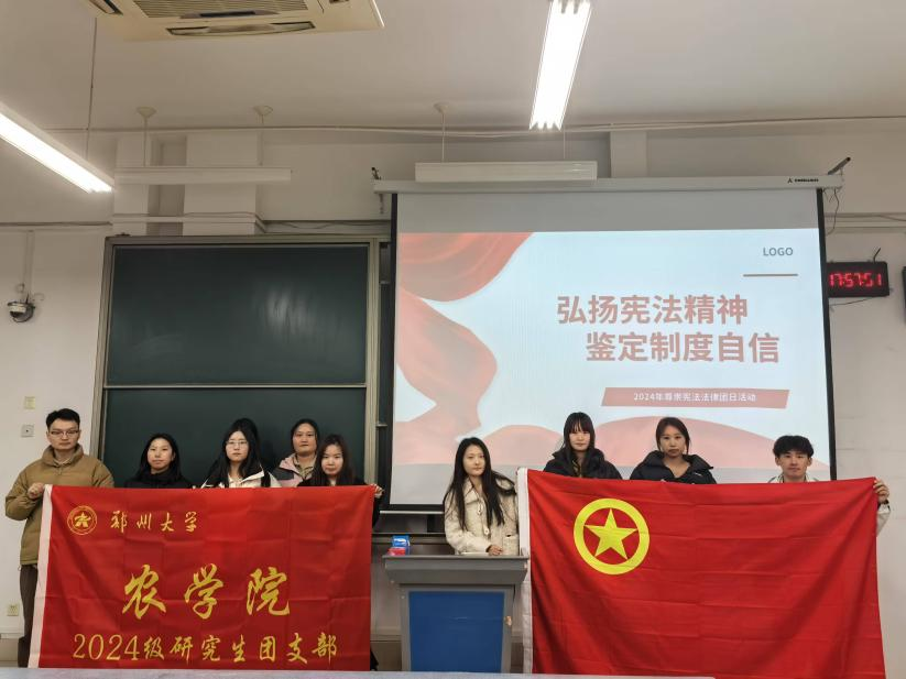 / 2024-12为全面贯彻落实党的二十大和二十届二中、三中全会精神,深入学习宣传贯彻习近平法治思想。持续加强宪法宣传教育,推动宪法全面实施,大力弘扬宪法精神,坚定维护宪法权威,积极响应学校和学院关于尊崇宪法法律的号召,引导团员和青年学习宪法知识,弘扬宪法精神,维护宪法权威,推动宪法实施,做宪法的忠实崇尚者、自觉遵守者、坚定捍卫者,为中国特色社会主义法治建设注入青春力量。郑州大学农学院2024级研究生团支部于12.15-1...